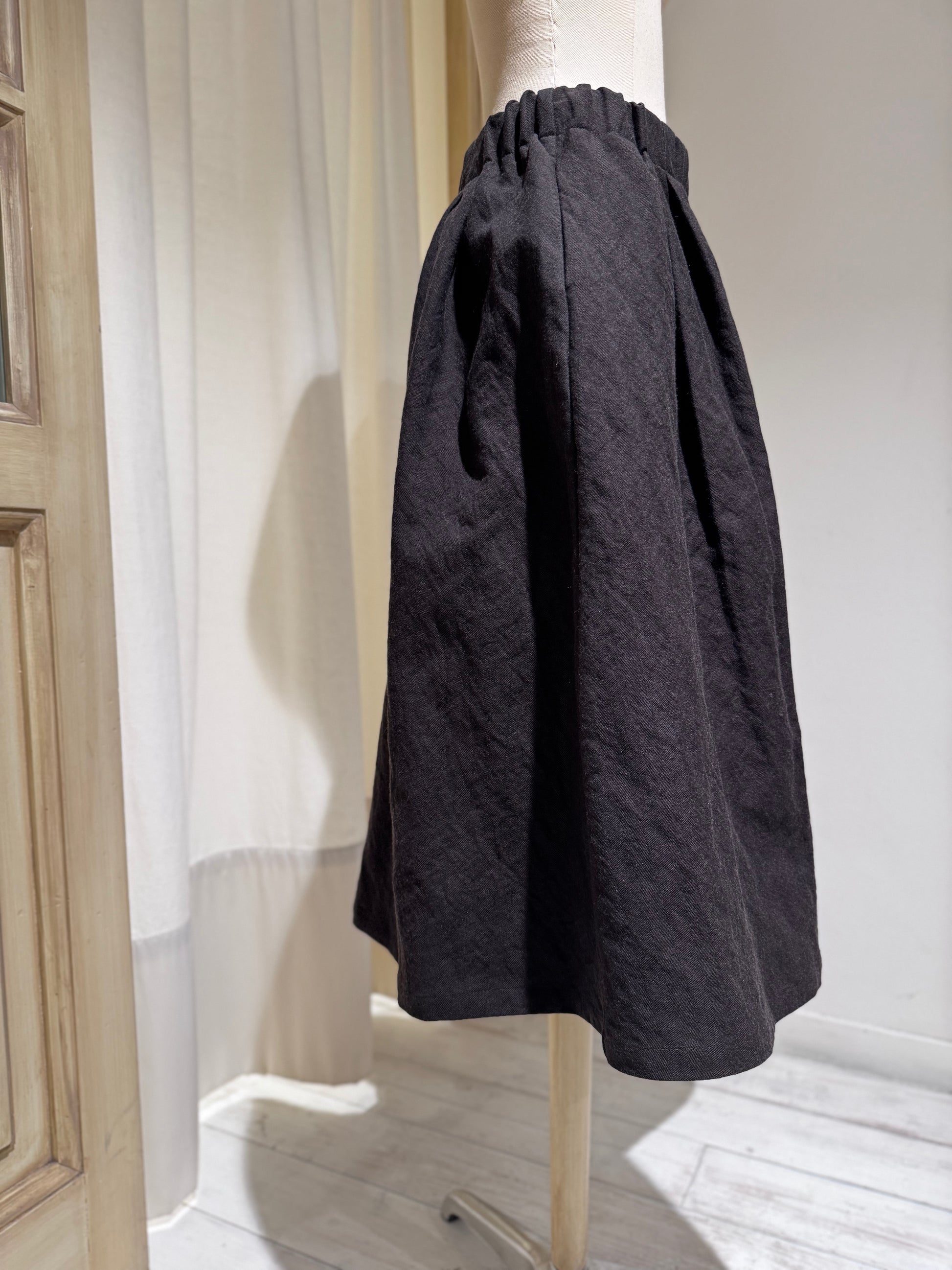 Skirt with Elastic Waist, Side Pockets, Midi Length