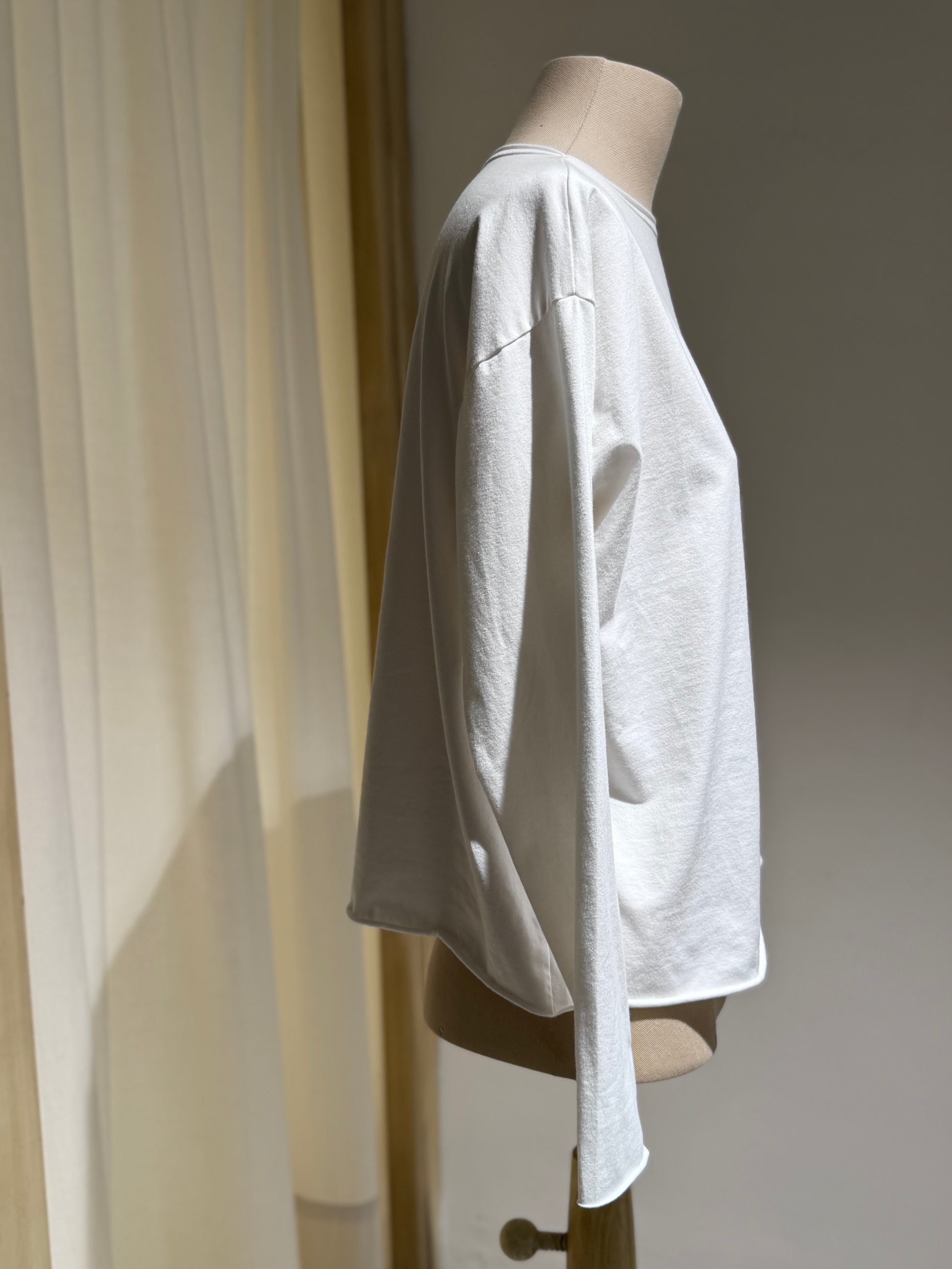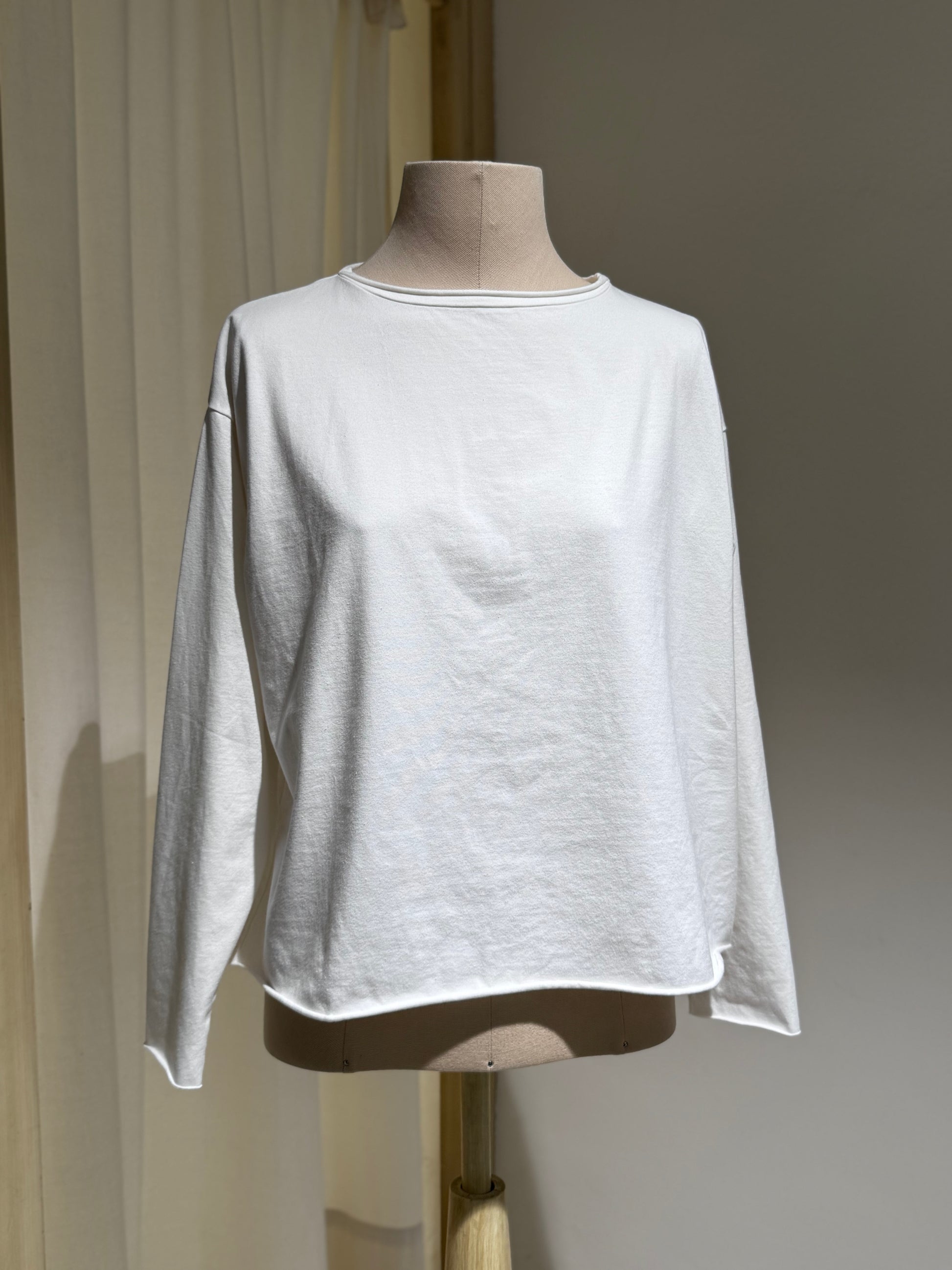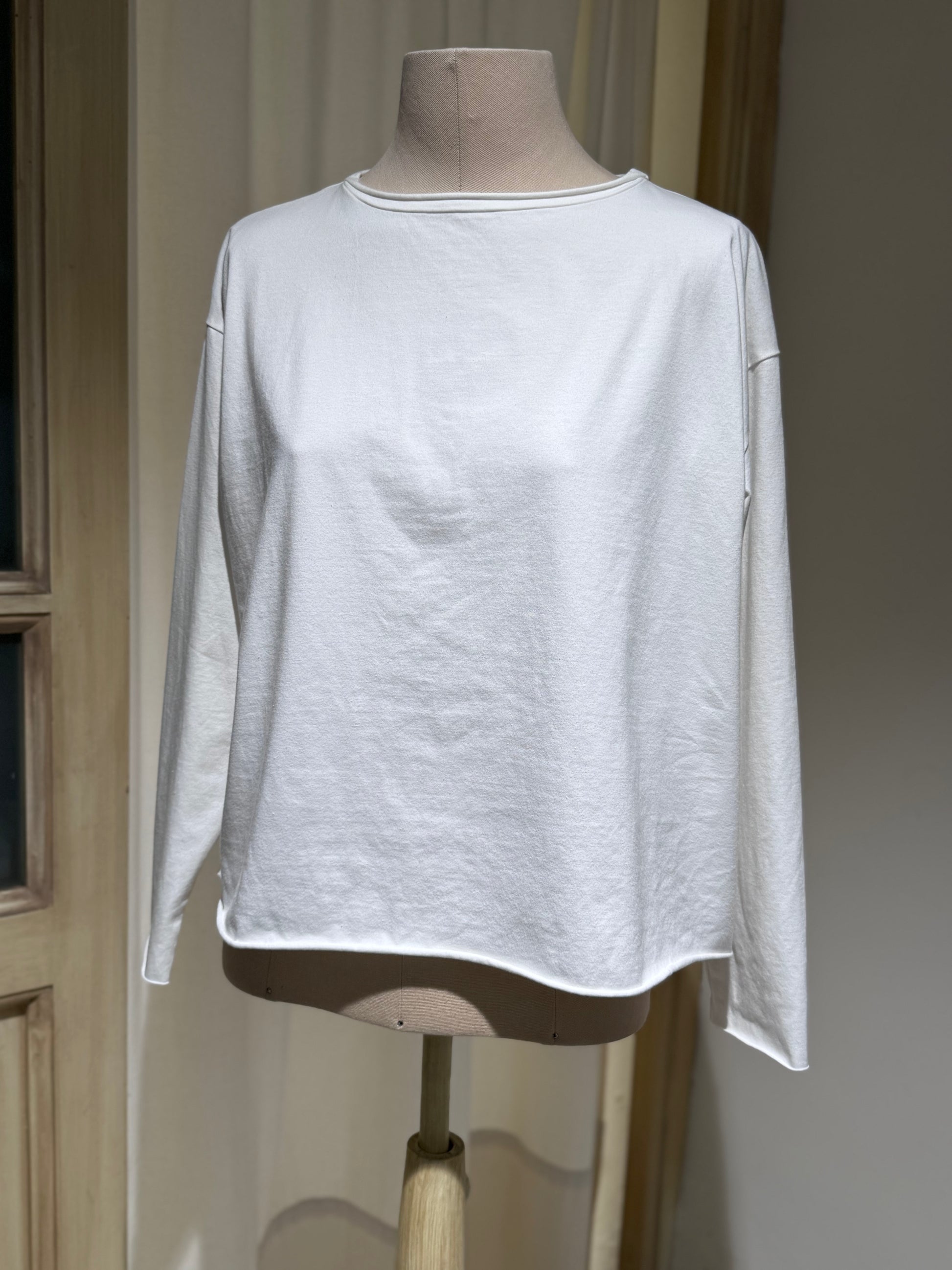 Boxy Long Sleeves Top In Elastic Cotton Jersey