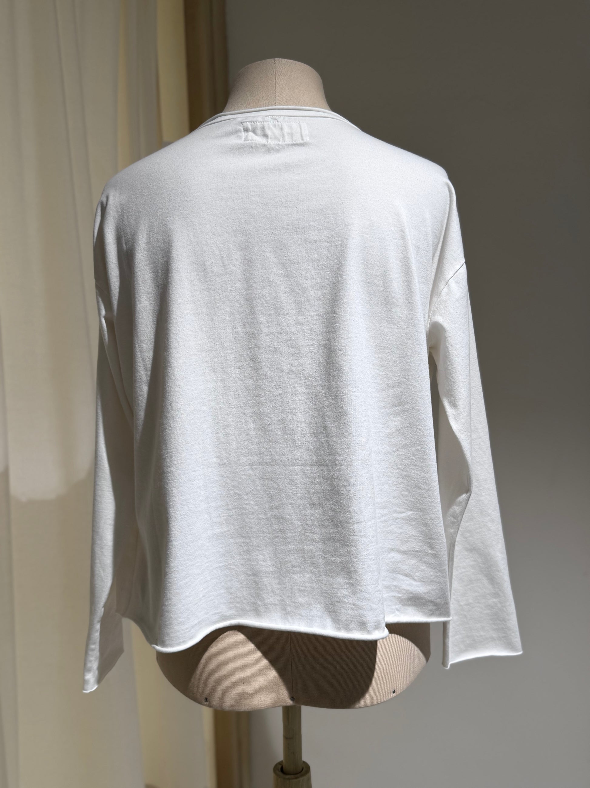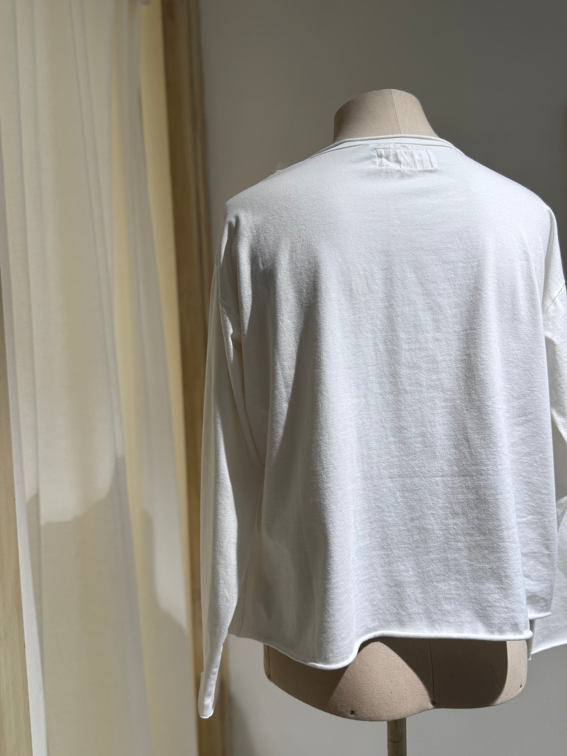 Top squadrato a maniche lunghe in jersey di cotone elasticizzato
