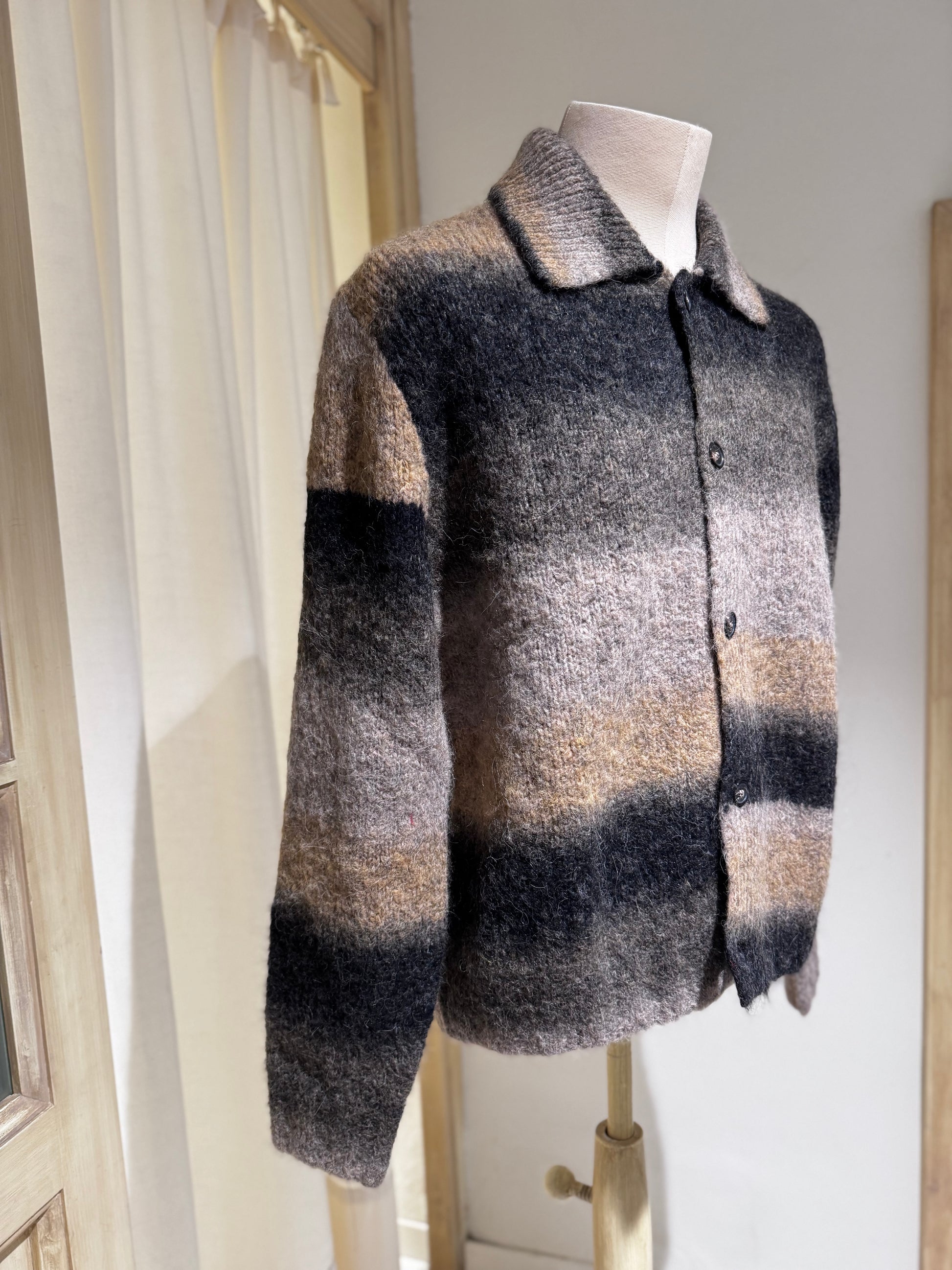 Gradient alpaca wool knit, Ribbed collar, Button closure, Ribbed cuffs & hem