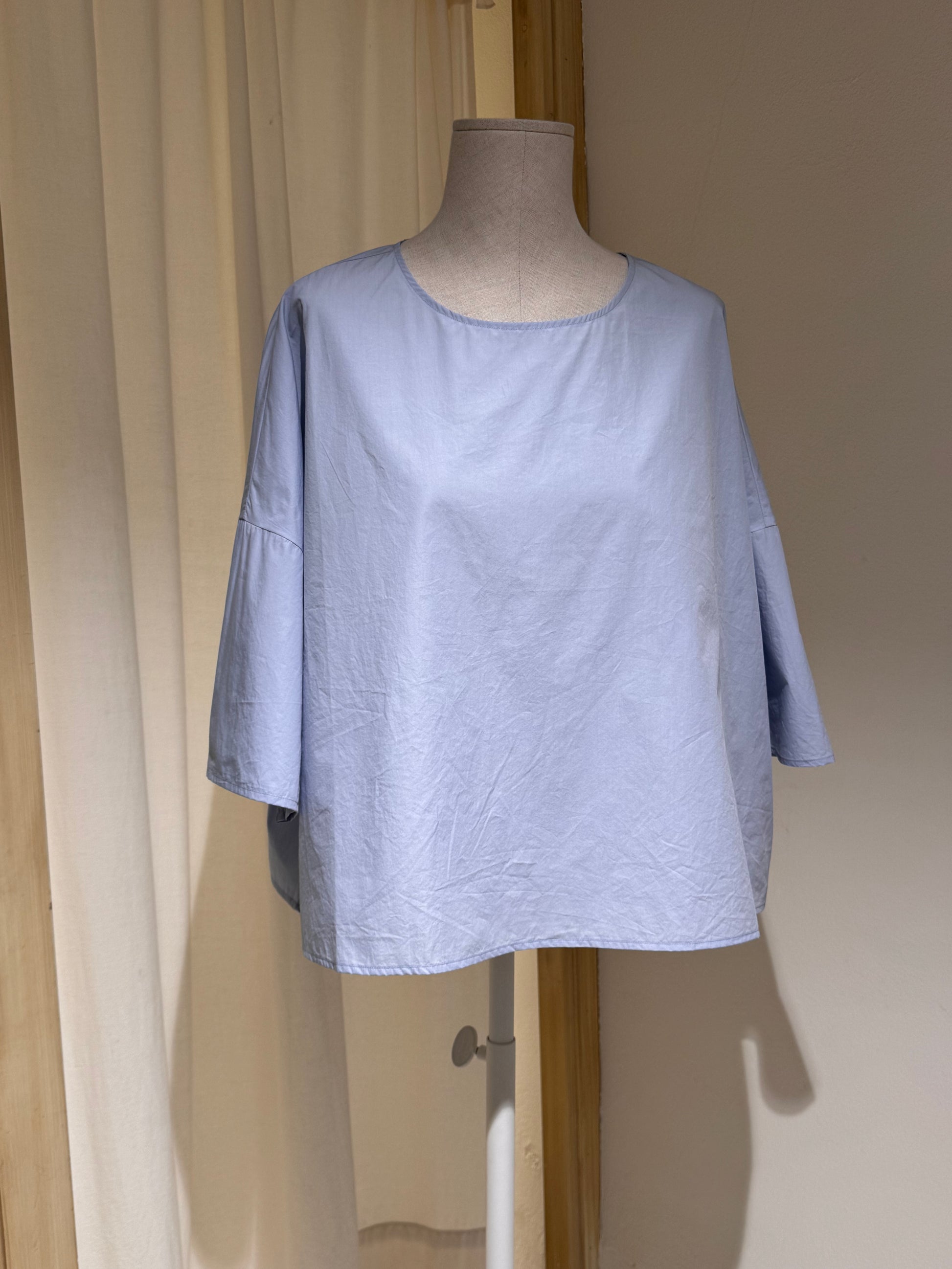 Blousa con manica a tre quarti con scotto stondato e morbido.