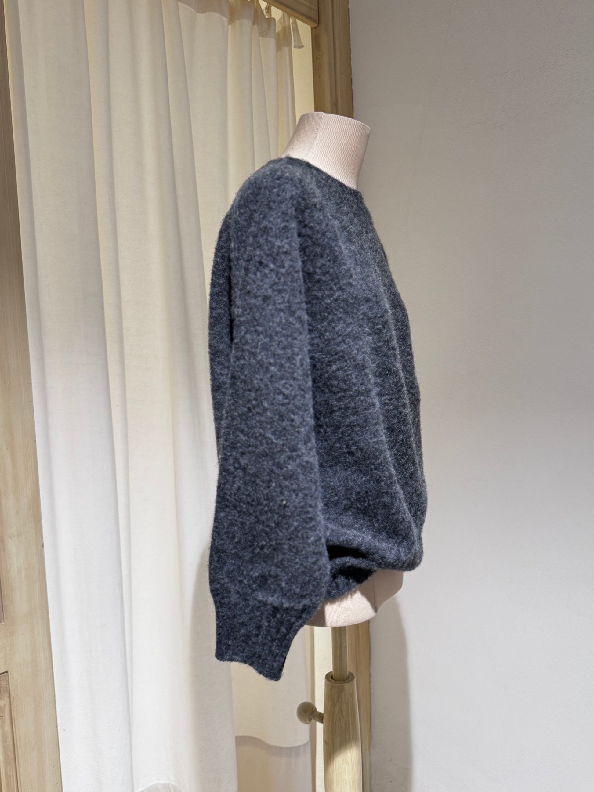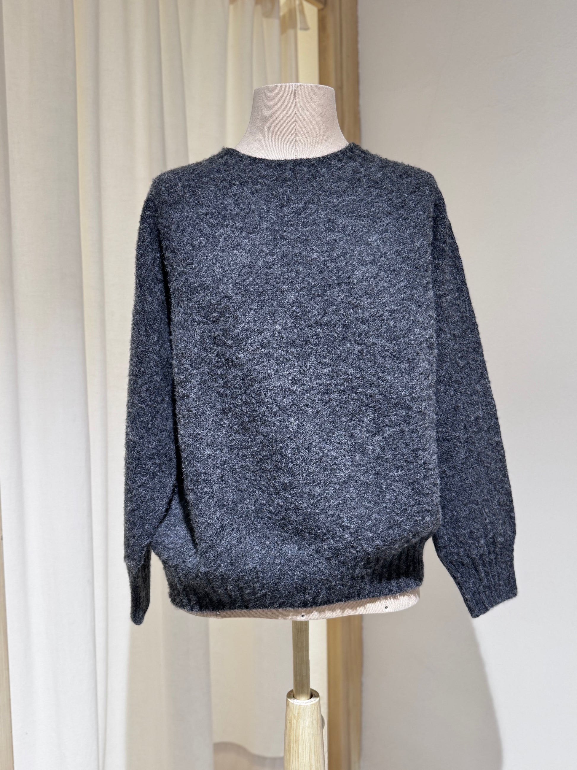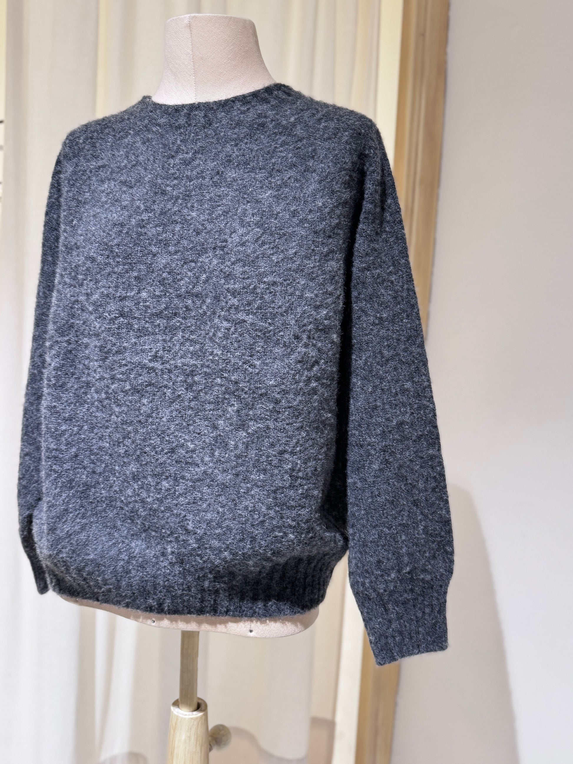100% lana scozzese di provenienza locale Filato da vello di pecora Shetland naturale di prima qualità Finitura spazzolata con tecniche tradizionali e cardi naturali Polsini e orlo a costine sottili per una vestibilità raffinata Rifinito a mano con cura Vestibilità fedele alla taglia Prodotto con orgoglio in Scozia