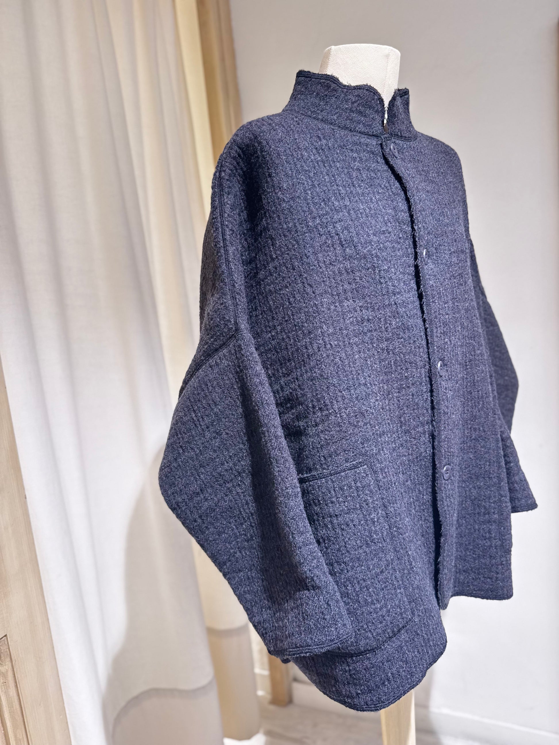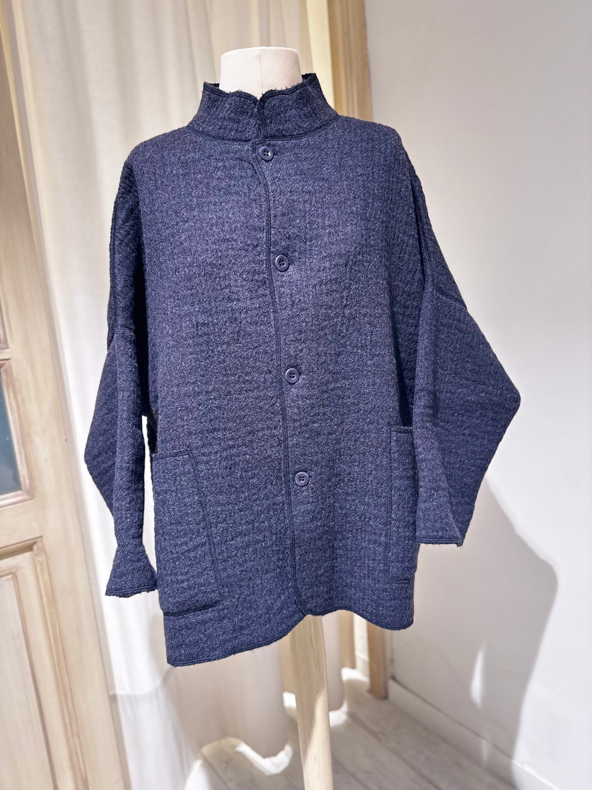 JACKET WITH PATCH POCKETS AND MANDARIN COLLAR IN DOUBLE WOVEN WOOL