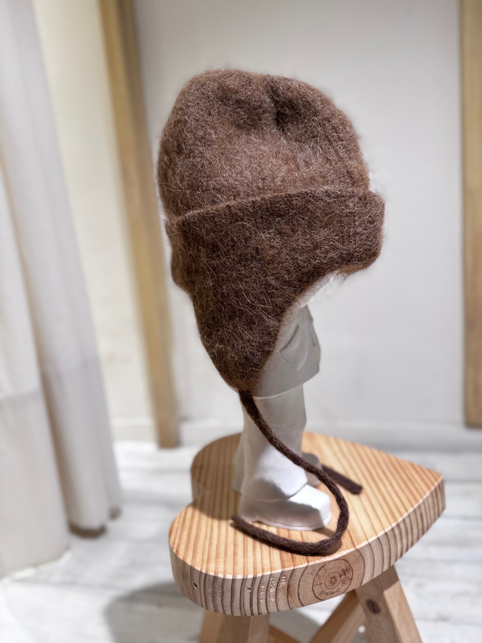 Cappello con para-orecchie in lana e laccetto a chiusura. Rigorosamente made in Japan.