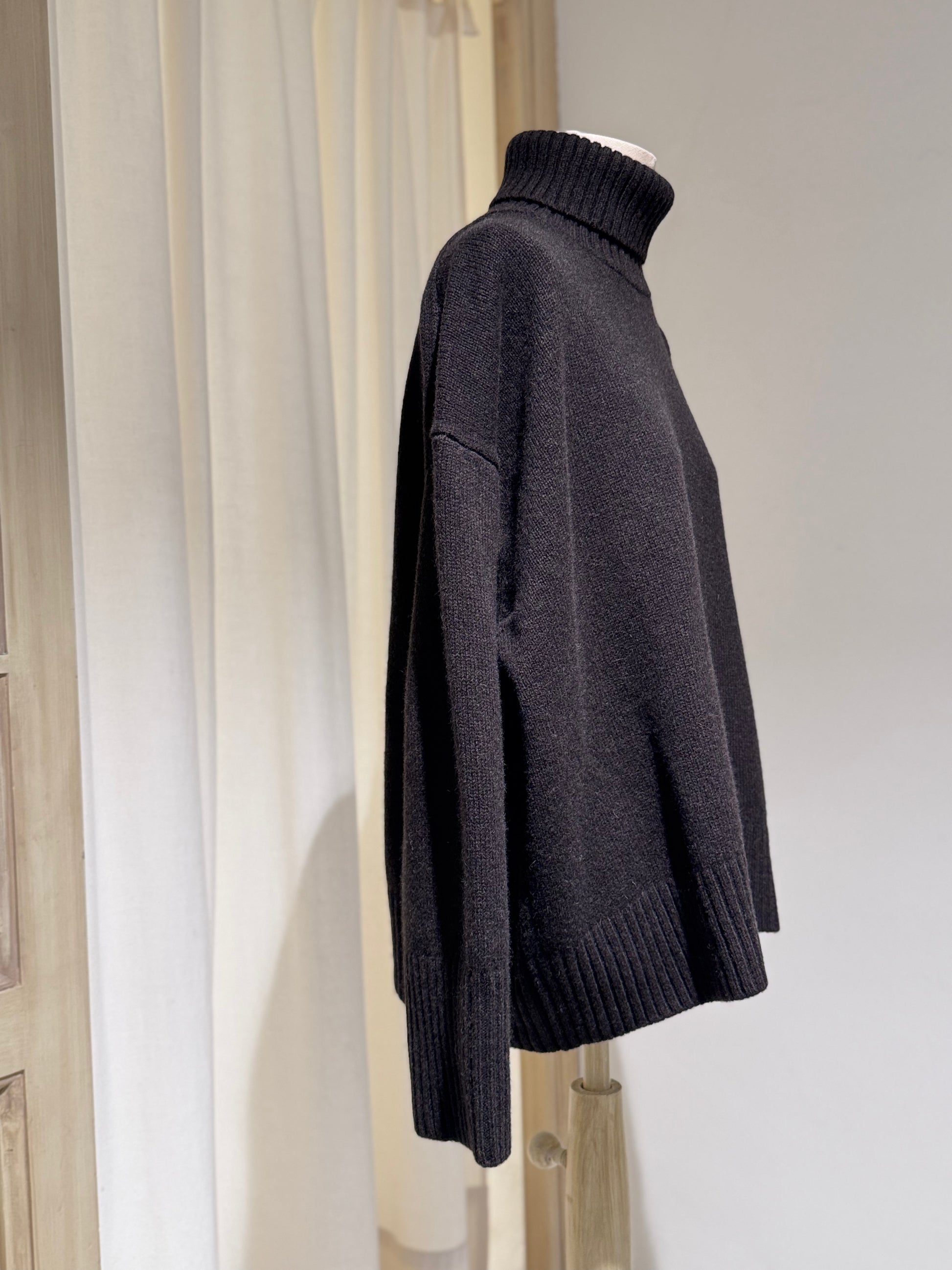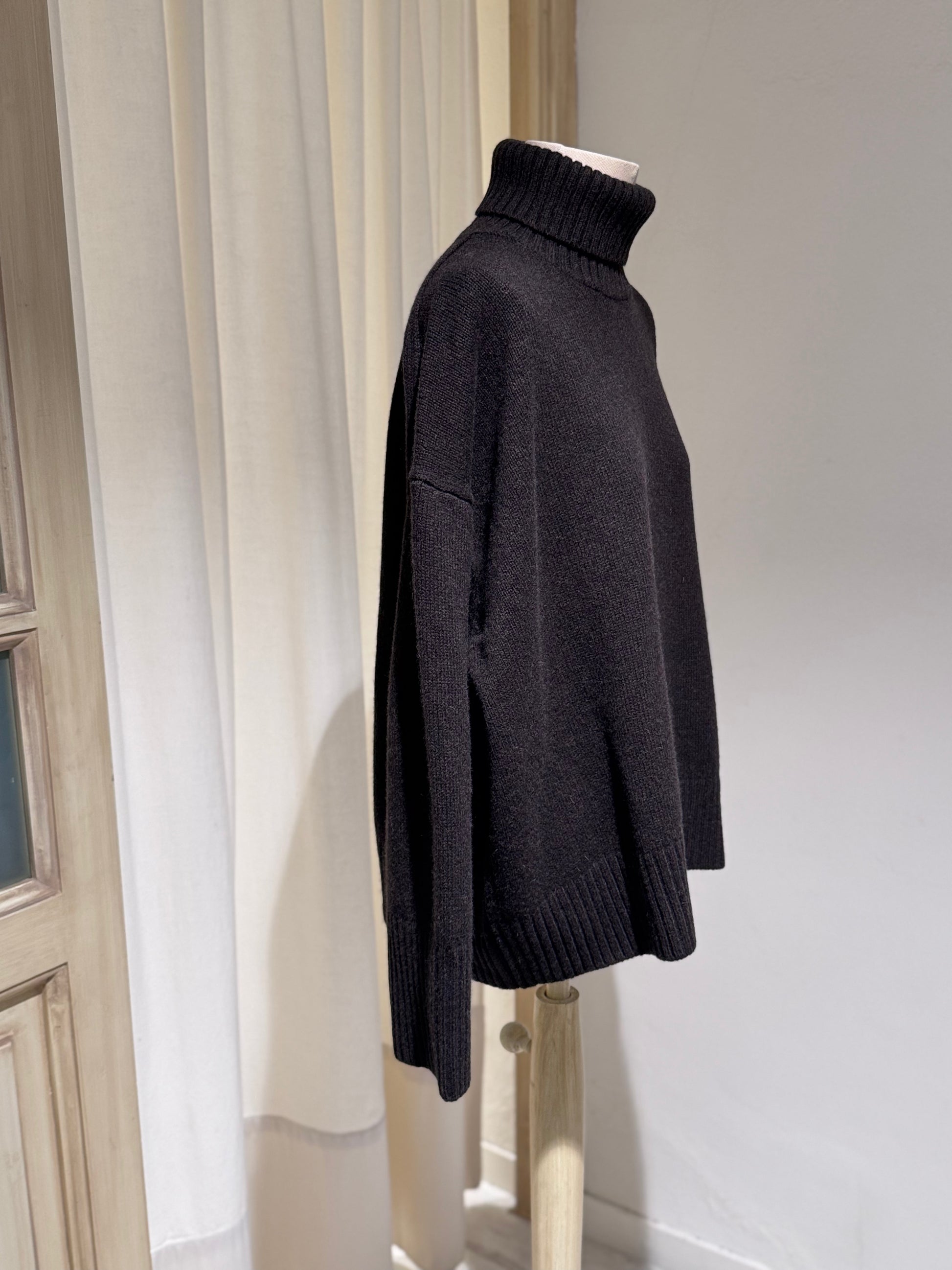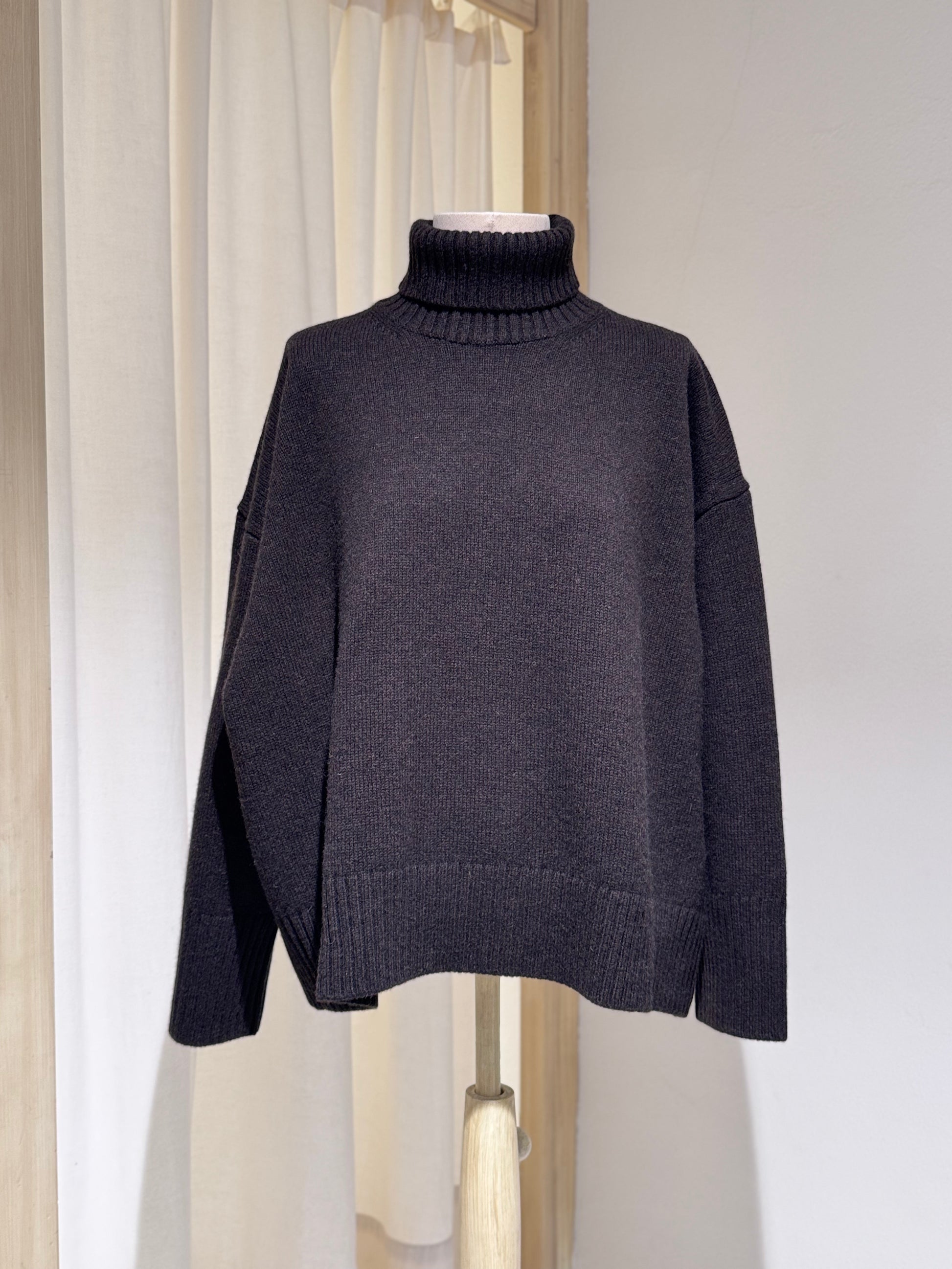 WILLIAM is a high-neck sweater made from thick, soft, and supple 100% merino wool. A timeless and comfortable basic, ideal for the coldest days. Its signature details reflect its Soeur identity: subtle decreases, ribbed edges, and an oversized boxy cut.