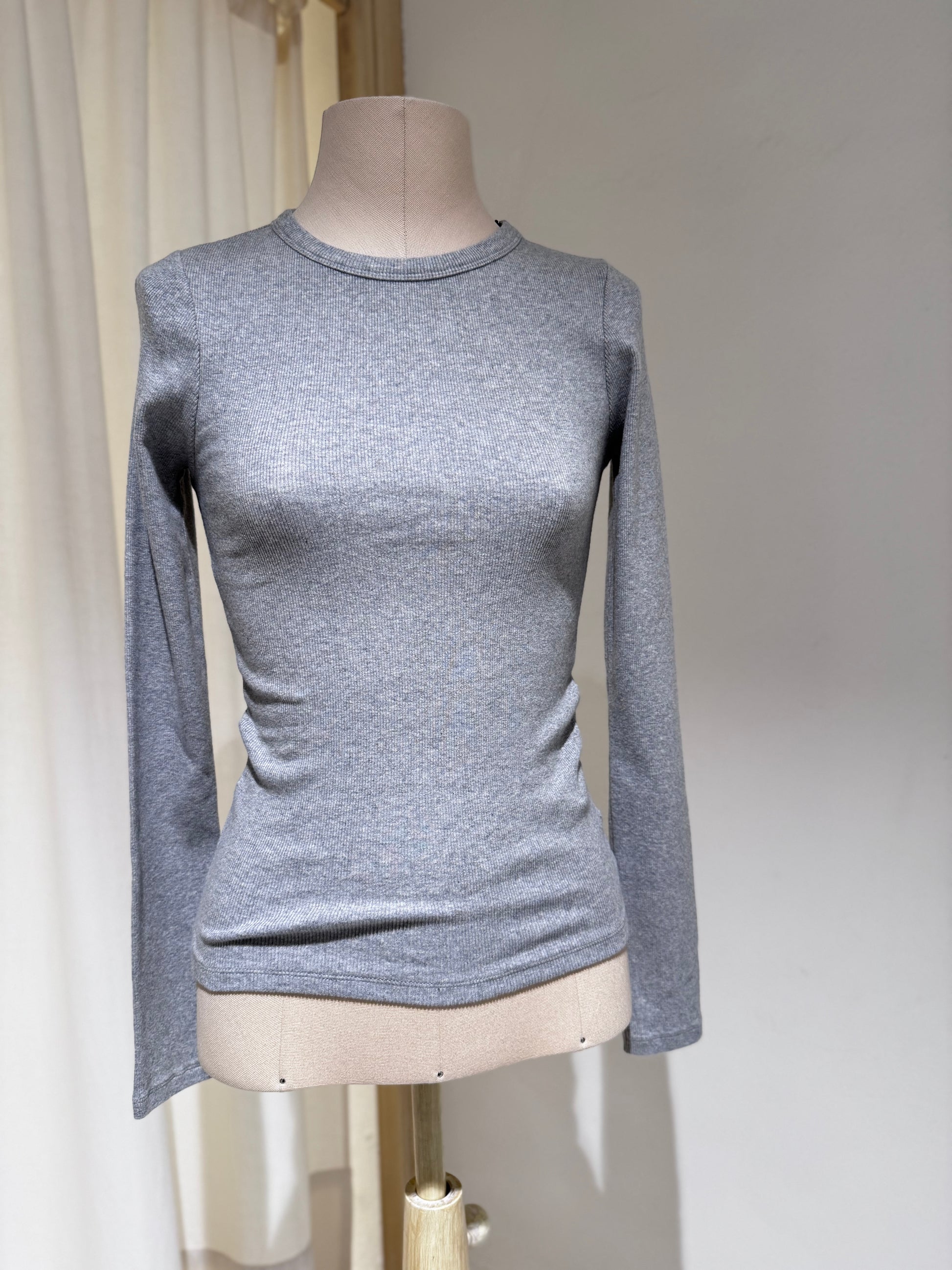Looking good, feeling better. The rib-knitted long-sleeved tee is fitted snug, made almost entirely of organic cotton, but we decided to add in 5% elastane to give you some extra wiggle room.